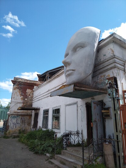 - Что означают огромные маски на здании фабрики?