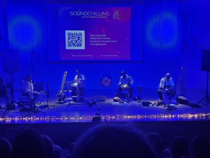 SoundChilling - это гармоничное сочетание музыкального концерта, сеанса расслабления, звуковой релаксации и медитации. Музыканты погружают слушателей в особую атмосферу звучания удивительных музыкальных инструментов со всего мира. Это — не обычный концерт, а сеанс, во время которого рекомендуется лежать или сидеть в полном расслаблении.