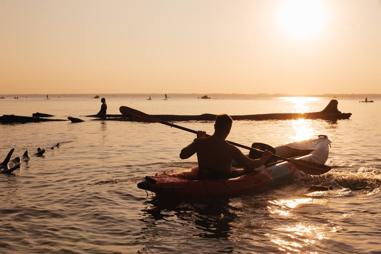 На берегу Обского залива вы можете покататься на сап-бордах, поиграть в водный волейбол, посетить баню.