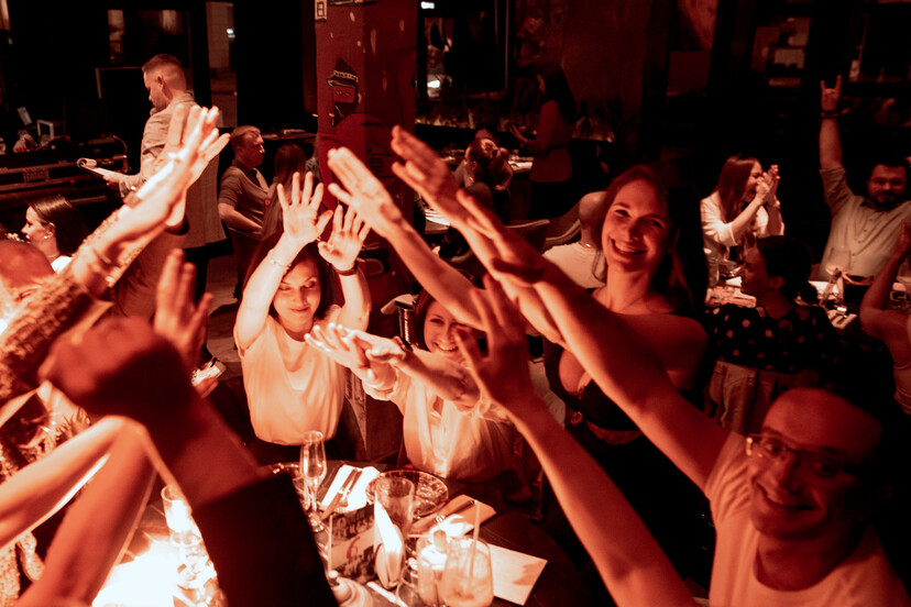 Смысл состоит в том, что мы делим всех гостей на команды от 4 до 9 человек. Командам даётся ровно 90 секунд на то, чтобы ответить на вопрос, который задаёт ведущий. Вопросы не сложные, как правило, на логику. Ответы вы пишете на карточках, которые заранее раздают организаторы. Как только ответ готов, поднимаете руку и сдаёте карточку. Чтобы игра была более динамичной, мы подготовили для команд несколько раундов. Они отличаются друг от друга условиями выполнения заданий.