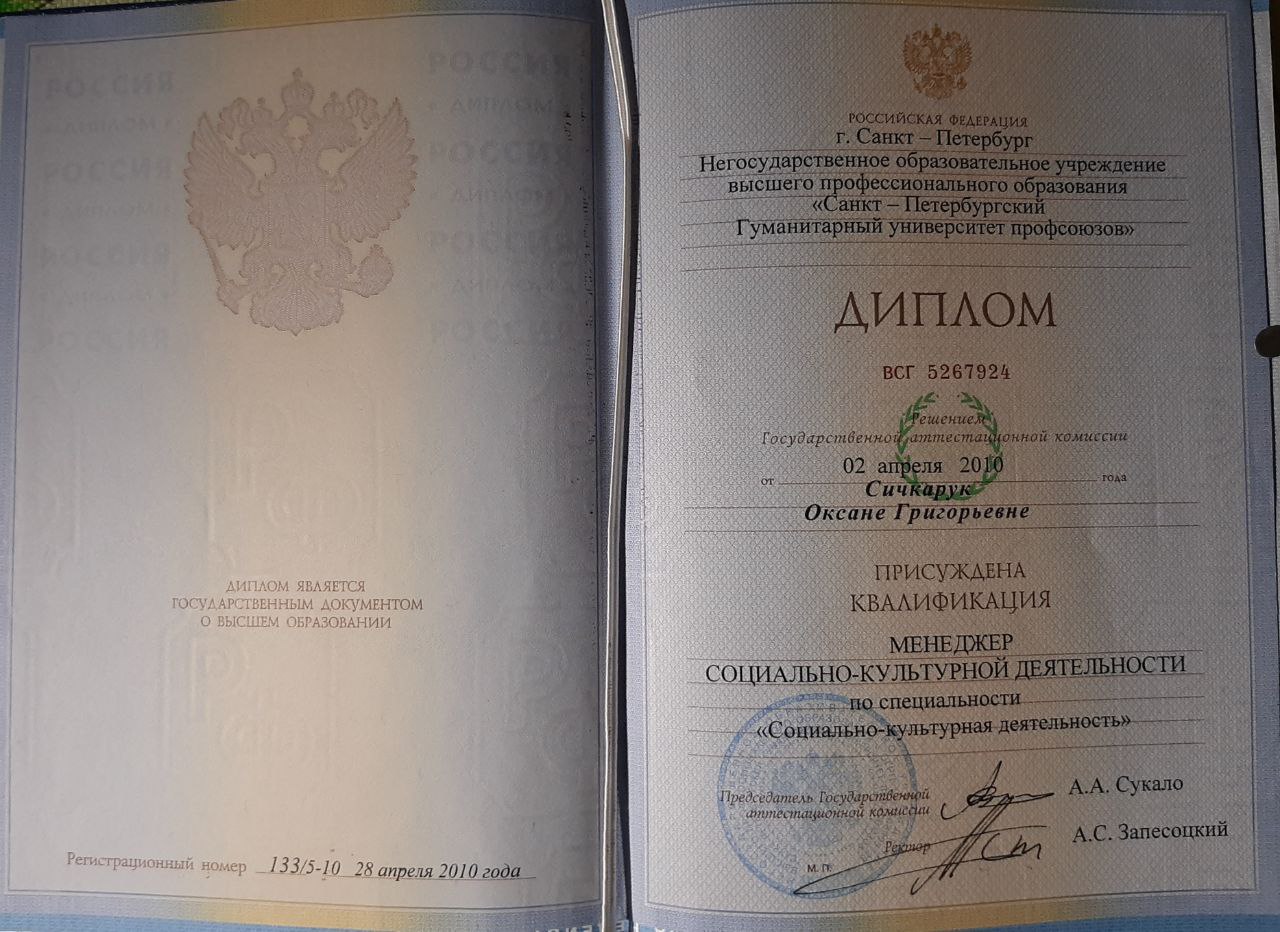 Закончила СПБГУП (Факультет Культуры),