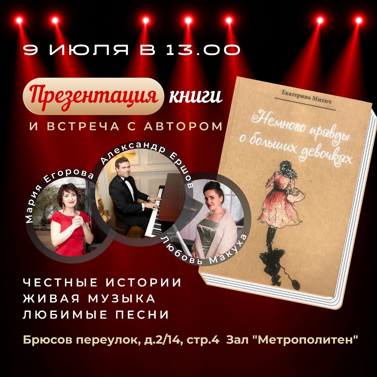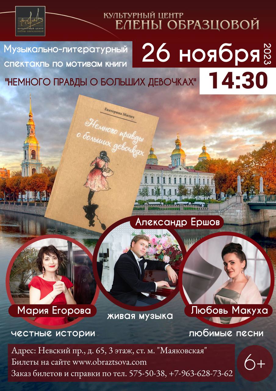 Музыкально-литературный спектакль "Немного правды о больших девочках" создан по мотивам одноимённой книги петербургской писательницы Екатерины Митич.