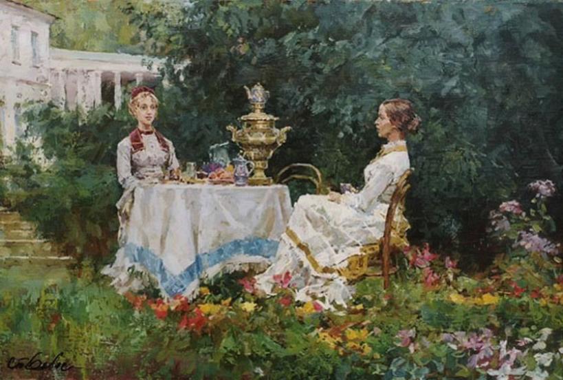 - на картины известных художников, в которых можно встретить сцены чаепития