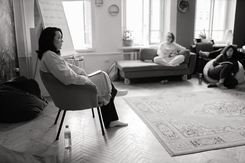 В небольшой группе. В безопасном пространстве и поддерживающем окружении.
