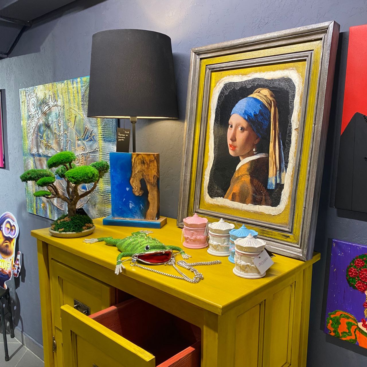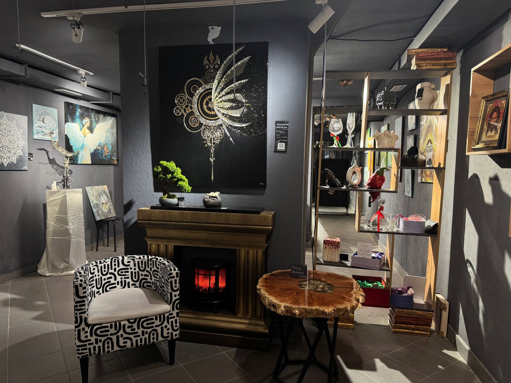 Очень понравились картины и скульптуры. Можно найти для покупки очень симпатичные украшения. Девушки, там работающие, очень дружелюбные и приятные, рассказывают-показывают ненавязчиво. Для большого индустриального города внезапно маленькое уютное местечко с каким-то питерским вайбом, реально кроличья нора. :) В общем, я приду ещё. ❤️